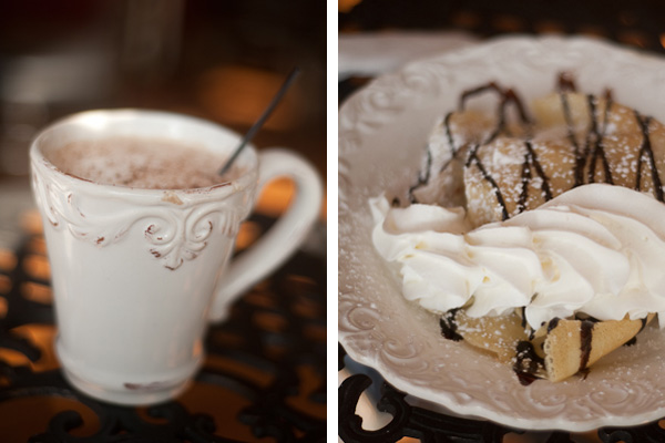 We almost immediately spied something overwhelming on the menu: a nutella crepe! With strawberries and bananas! Nutella is a personal favorite in the Schwartz house. We cannot keep a jar in the kitchen, or anywhere really. Chocolate and hazelnut is a dangerous combination of delicious temptation. Add strawberries and bananas and fresh whipped cream – this is potentially one of the best ideas ever. And yes, this Nutella crepe is every bit as good as I hoped. Be still, my beating heart.