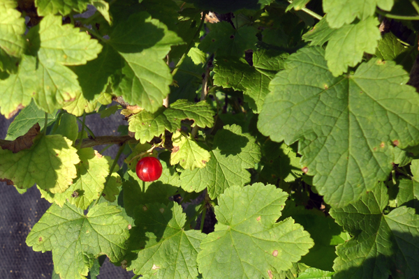 One perfect red currant, sadly unharvested. Photo Credit James Eisenstein.